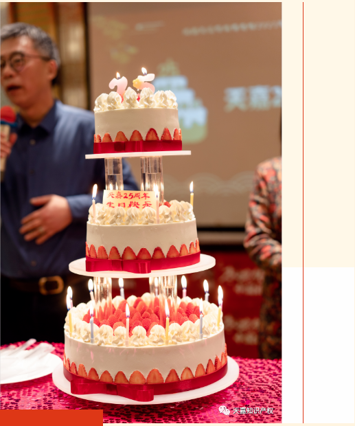 晚会的高潮时刻当属成都天嘉专利事务所的25周岁庆生环节。