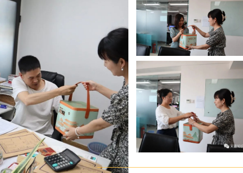 在行政部的组织下,天嘉小伙伴们有序的领取礼盒。