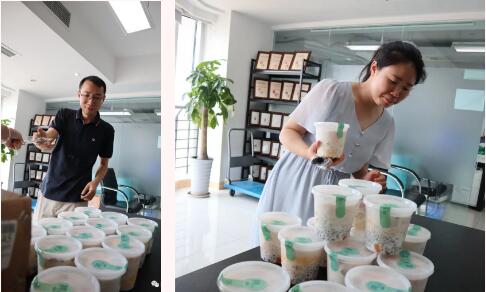 依次从工会成员们的手中接过下午茶,