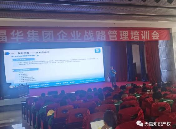 2023年7月6日,成都天嘉专利事务所创始合伙人张新受邀参加了福华通达化学股份公司举办的2023 年专利申报知识培训活动,通过《专利挖掘布局与风险预警分析策划》为题,为福华通达化学股份公司各部门技术管理人员及技术人员进行了主题授课。