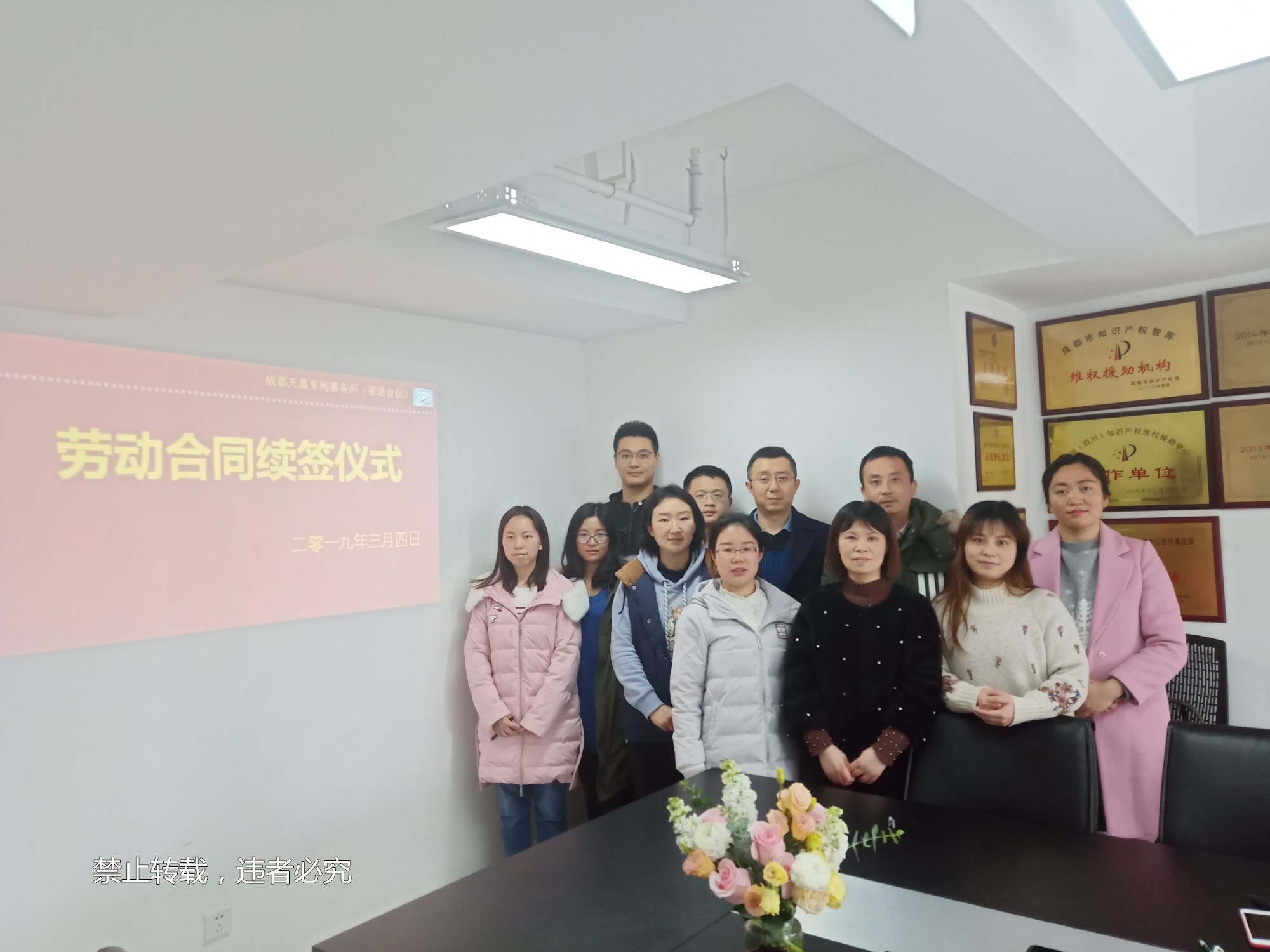 多年的选择,是彼此给予对方无言的信任;多年的坚持,更是双方之间最大的认可。又是一年春风轻拂,新的篇章再次打开了扉页,已入天嘉多年的老员工们选择再次牵手天嘉,决定与天嘉再续“情缘”。3月5日下午,我所为保障员工的权益,凸显对员工的高度关注与重视,于会议室展开了“员工劳动合同续签仪式”。...
