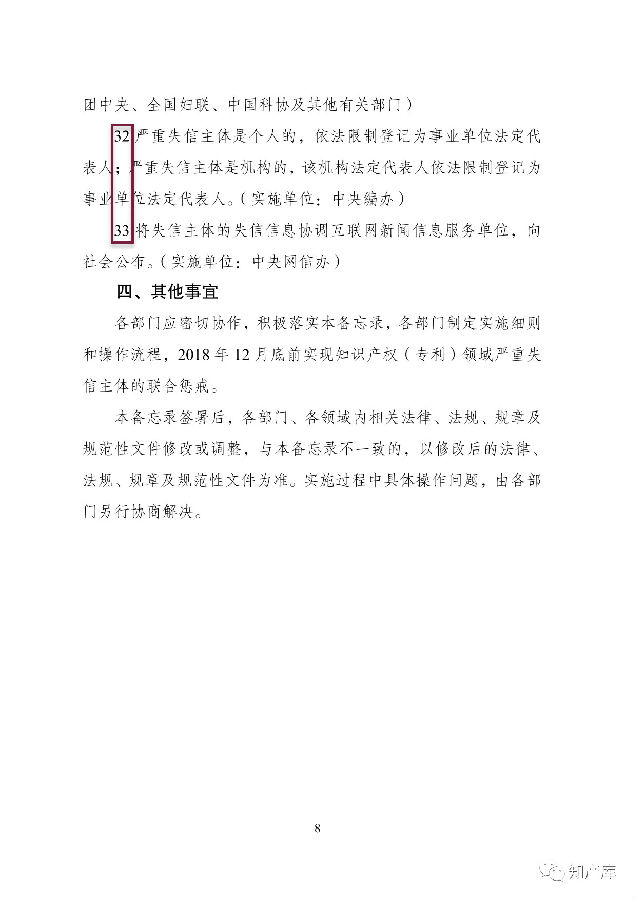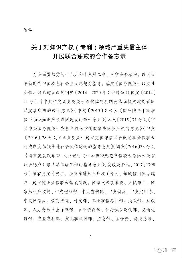 附件:关于对知识产权(专利)领域严重失信主体开展联合惩戒的合作备忘录