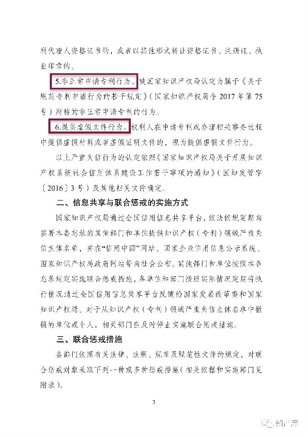 印发《关于对知识产权(专利)领域严重失信主体开展联合惩戒的合作备忘录》的通知