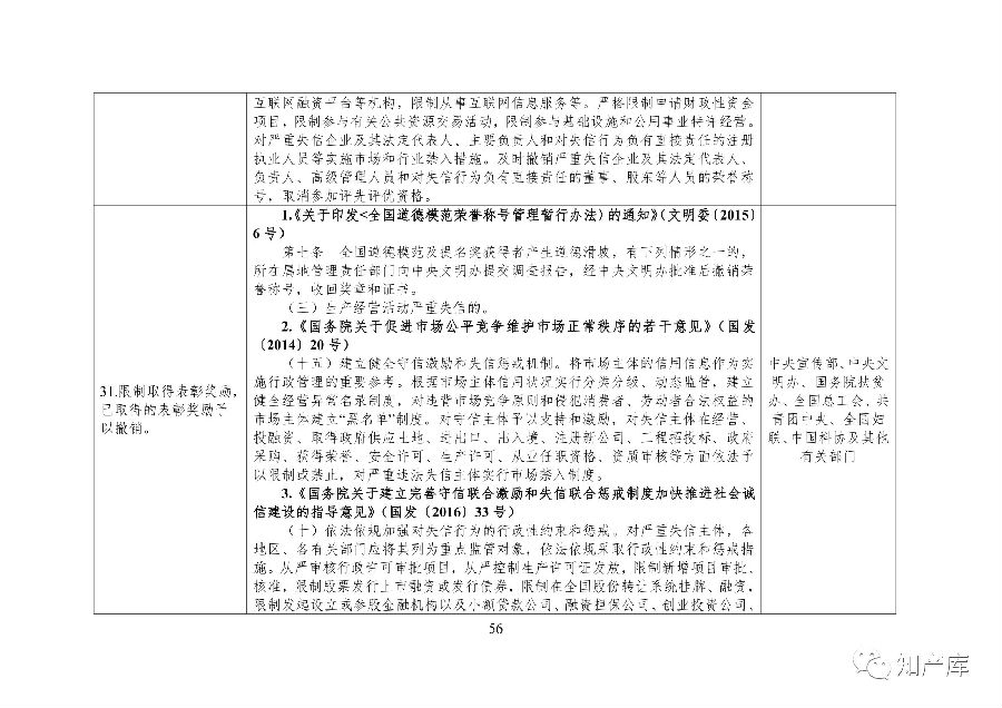 有关文件要求,加快推进知识产权(专利)领域信用体系建设,建立健全失信联合惩戒制度,国家发展改革委、人民银行、国家知识产权局、中央组织部、中央宣传部、中央编办、中央文明办、中央网信办、最高法院、科技部、工业和信息化部、民政部、财政部、人力资源社会保障部、自然资源部、住房城乡建设部、交通运输部、农业农村部、文化和旅游部、应急部、国资委、海关总署、税务总局、市场监管总局、广电总局、医保局、银保监会、证监会、林草局、民航局、外汇局、药监局、国务院扶贫办、全国总工会、共青团中央、全国妇联、中国科协、铁路总公司等部门和单位联合签署了《关于对知识产权(专利)领域严重失信主体开展联合惩戒的合作备忘录》。现印发给你们,请认真贯彻执行。