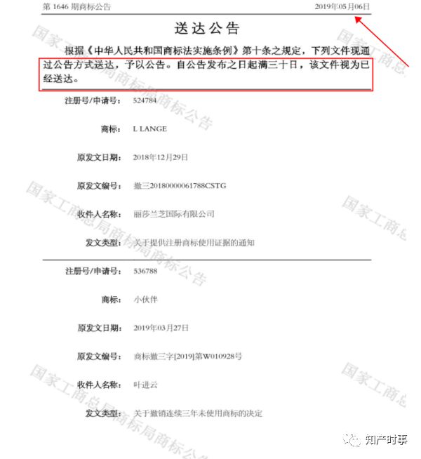 利用商标公告还很重要的一种情况是,在企业营业执照变更后,导致商标局发送的文件被退回时,商标局会选择公告的方式来送达文件。