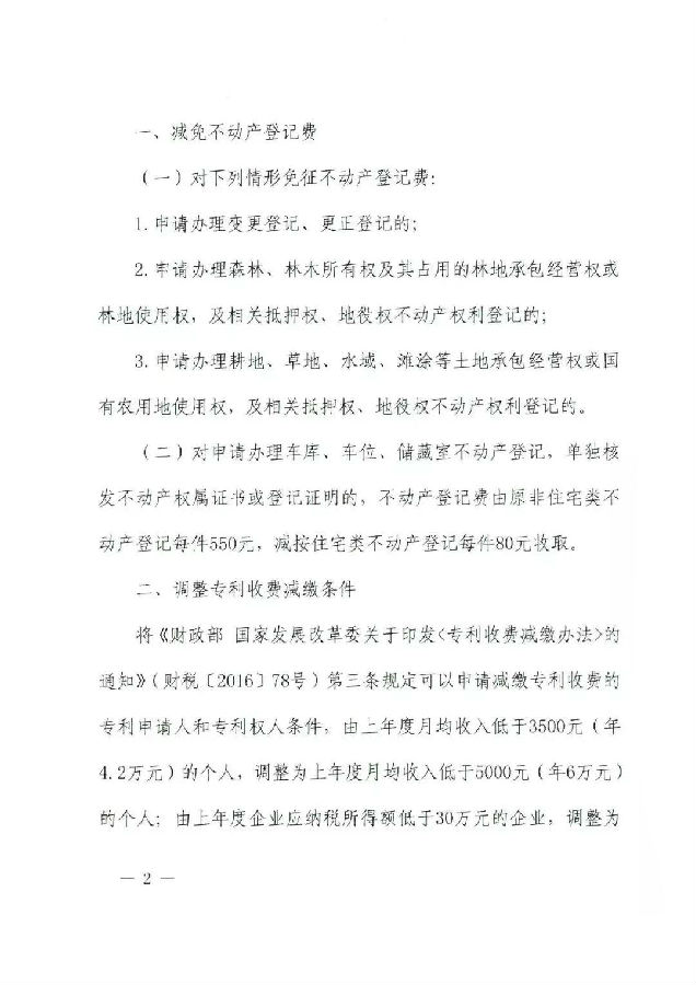 编者按:近日财政部 国家发展改革委发布关于减免部分行政事业性收费有关政策的通知"调整专利收费减缴条件"将《财政部国家发展改革委关于印发〈专利收费减缴办法〉的通知》(财税〔2016〕78号)第三条规定可以申请减缴专利收费的专利申请人和专利权人条件,由上年度月均收入低于3500元(年4.2万元)的个人,调整为上年度月均收入低于5000元(年6万元)的个人;由上年度企业应纳税所得额低于30万元的企业,调整为上年度企业应纳税所得额低于100万元的企业。