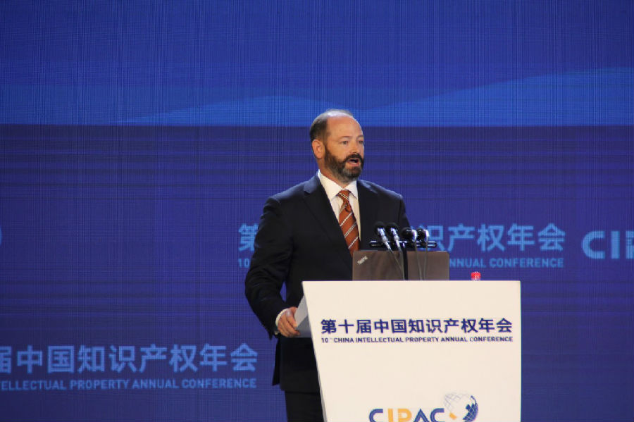 新的时代,我们将坚定不移走中国特色知识产权发展道路,紧紧围绕习近平总书记提出的,加强知识产权保护是完善产权保护制度最重要的内容,也是提高中国经济竞争力最大的激励,这样的根本定位,从国内国际两个维度,扎实做好相关工作,充分发挥知识产权作为创新驱动发展的“刚需”,国际贸易的“标配”,社会主义市场经济的基石等多重作用,有力支撑创新驱动发展和高水平对外开放。