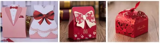 如图,不同外观设计的喜糖盒可申请不同的外观设计专利