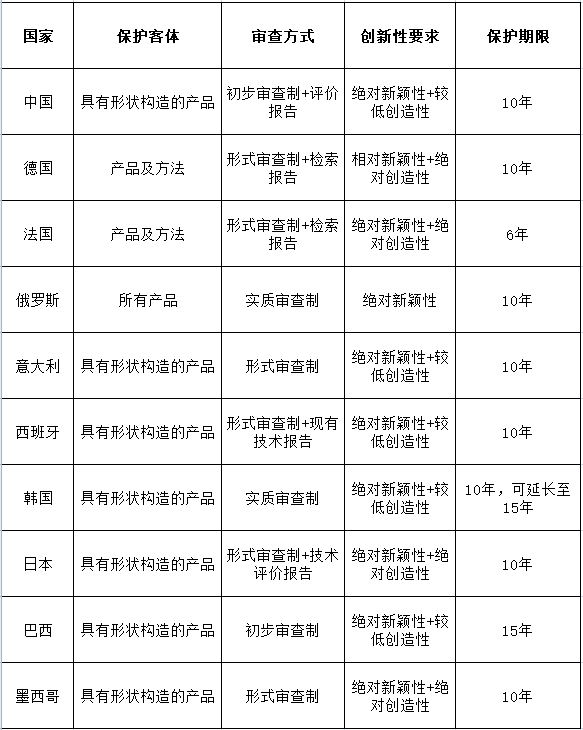 全球十个国家实用新型专利申请制度对比