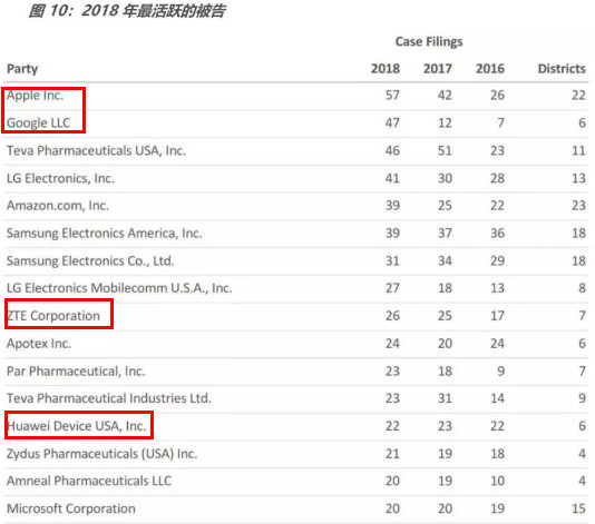 而专利流氓针对高科技企业的起诉尤其多。2018年三季度,美国高科技相关的1901件专利诉讼案件中,有85% 为NPE公司发起。