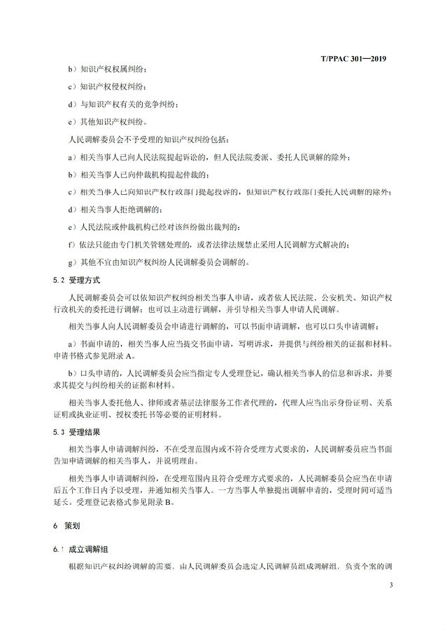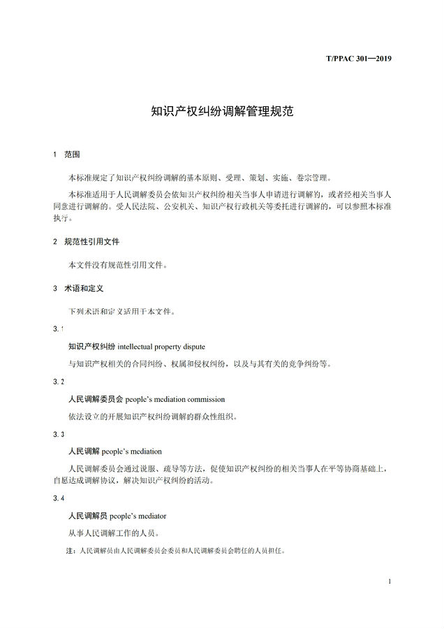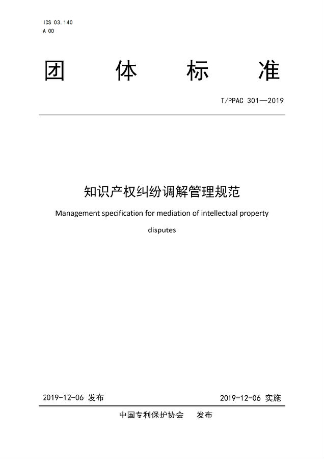 T/PPAC301-2019 知识产权纠纷调解管理规范