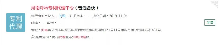 从网上的图可以看出,这几家公司分别是泠沄专利中心和泠沄商标专利事务公示中心,根据企查查官网搜索,确实有一家河南泠沄专利代理中心: