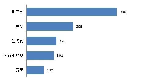 报告统计发现,在抗病毒产业链中化学药分支专利申请数量最多,为980项,抗病毒治疗药是关注的重点。