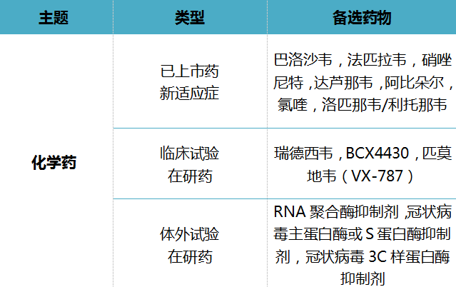 抗冠状病毒化学药技术分解表