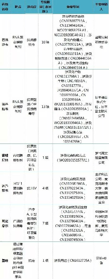 与冠状病毒相关的上市药专利信息