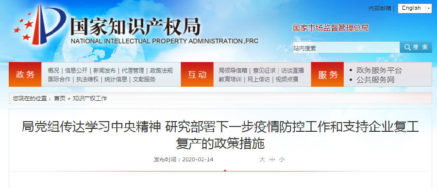 2月13日上午,国家知识产权局召开党组会议暨局应对新冠肺炎疫情工作领导小组会议,传达学习习近平总书记在中央政治局常委会会议上的重要讲话精神和在北京市调研指导疫情防控工作时的重要讲话精神,传达学习中央应对新冠肺炎疫情工作领导小组会议和国务院常务会议工作部署,研究下一步局疫情防控工作和支持企业复工复产的政策措施。局党组书记、局长、局应对疫情工作领导小组组长申长雨传达有关精神并对相关工作作出安排。