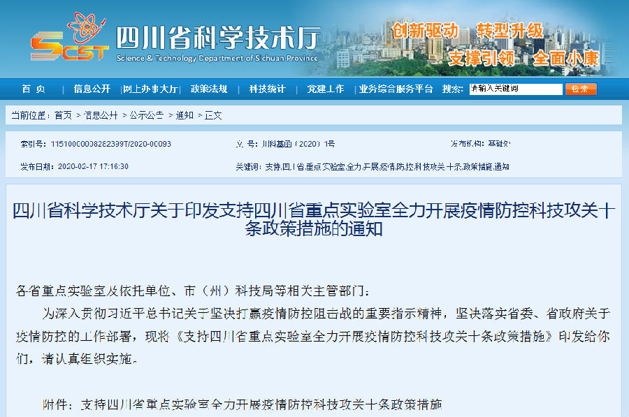 附件 支持四川省重点实验室全力开展疫情防控科技攻关十条政策措施