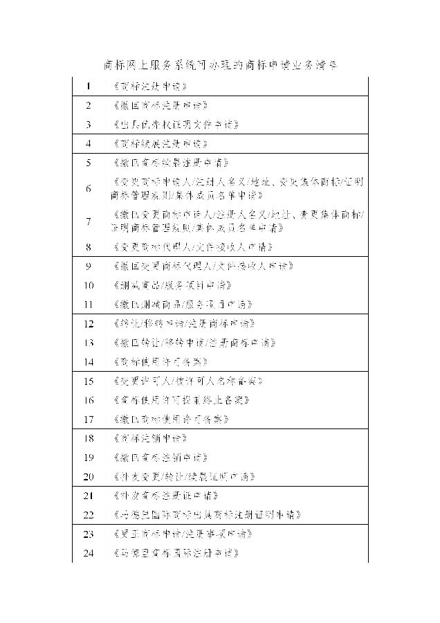 一、建议优先通过商标网上服务系统办理相关业务。商标注册申请、变更申请、续展申请、转让申请等24项商标申请可通过商标网上服务系统办理,同时已开通网上缴费功能。建议当事人优先选择网上方式办理文件提交、费用缴纳等业务。