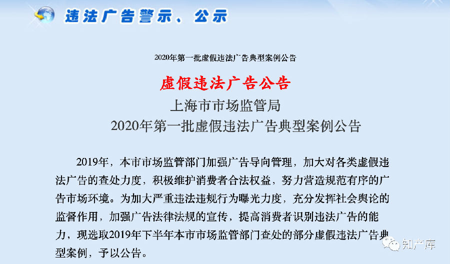 3月13日,上海市市场监管局发布2020年首批12件违法广告典型案例。