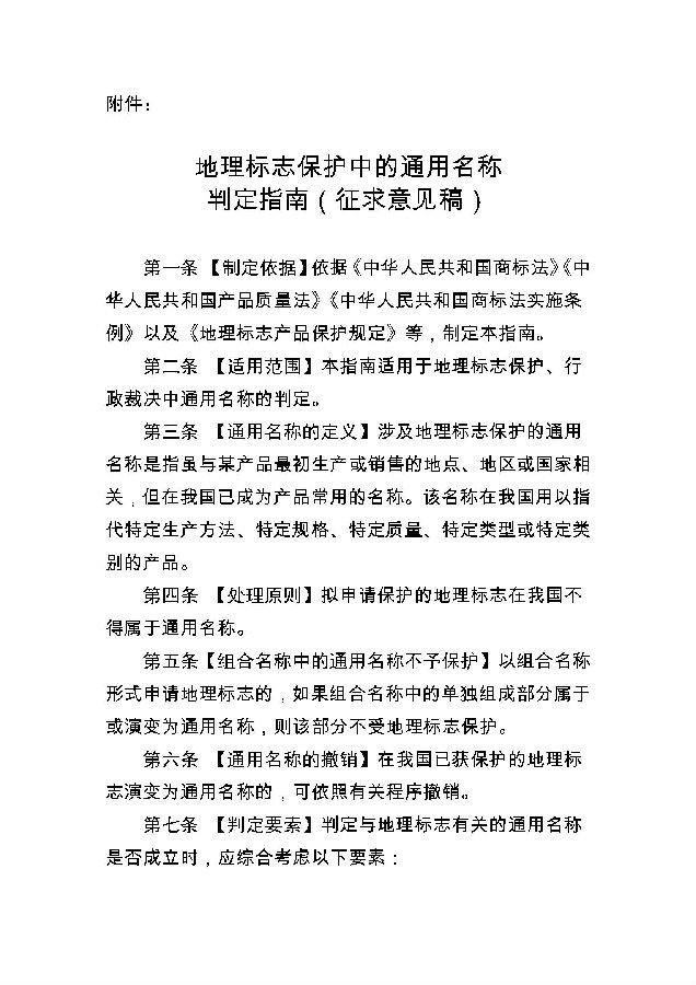 附件:《地理标志保护中的通用名称判定指南(征求意见稿)》