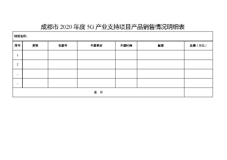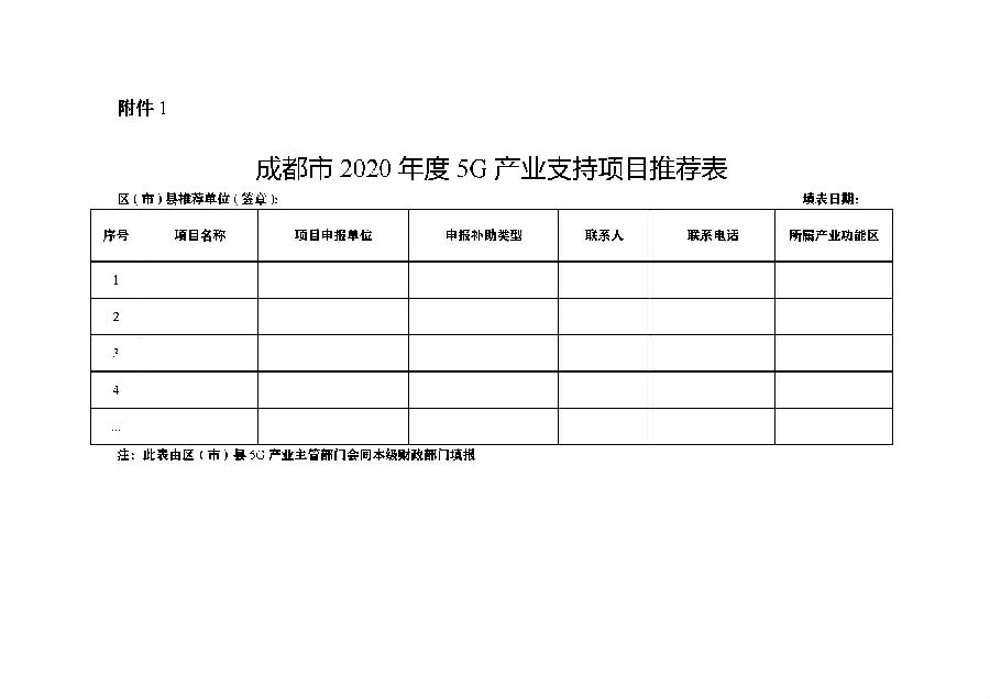 1.成都市2020年度5G产业支持项目推荐表