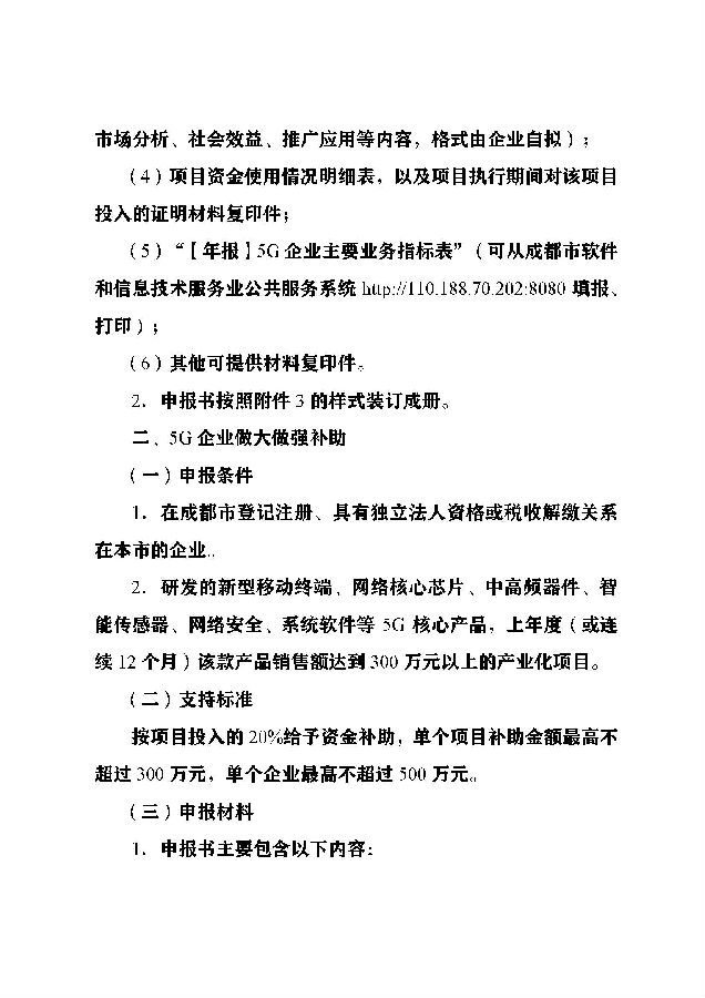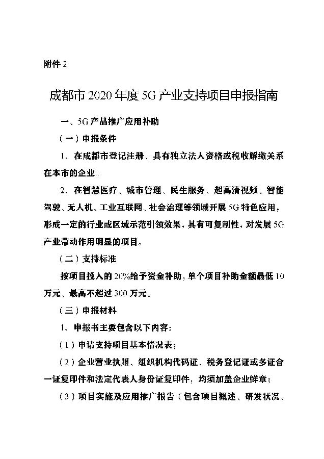 2.成都市2020年度5G产业支持项目申报指南