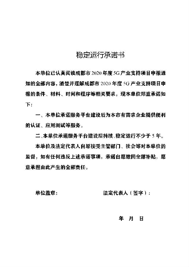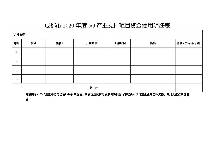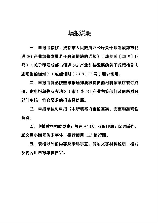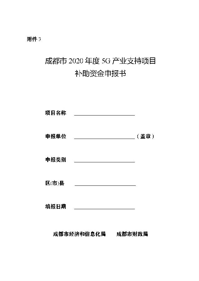3.成都市2020年度5G产业支持项目补助资金申报书