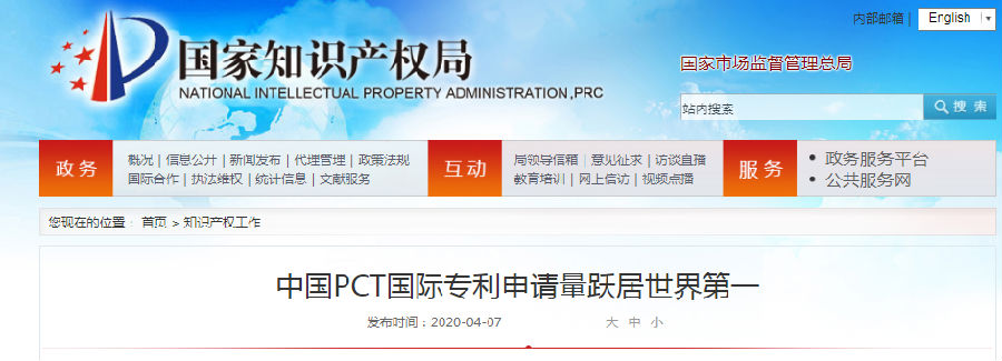 4月7日,世界知识产权组织(WIPO)在瑞士日内瓦举行发布会,公布了2019年专利、商标和工业品外观设计国际注册数据。数据显示,2019年,中国通过世界知识产权组织《专利合作条约》(PCT)途径提交了5.899万件专利申请,超过美国(5.784万件)跃升至第一位,成为提交国际专利申请量最多的国家。