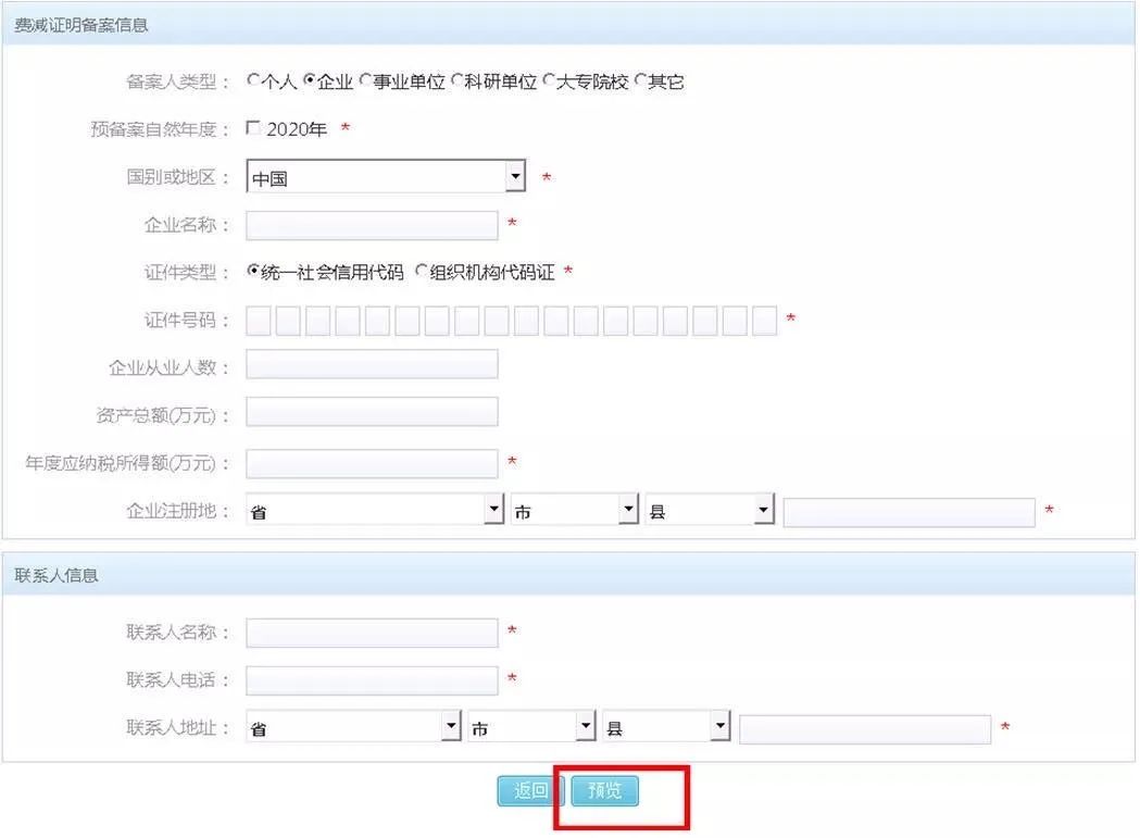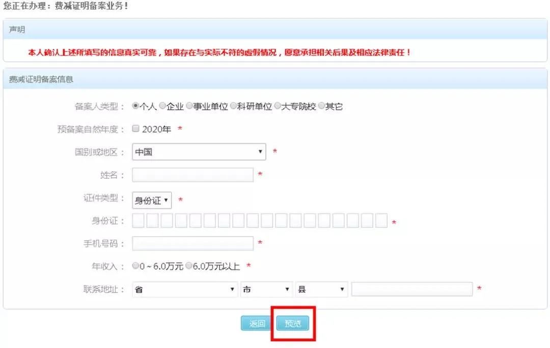 4.根据实际情况填写信息,有红色星号*的为必填项,填写完成后点击“预览”按钮,进入预览页面。
