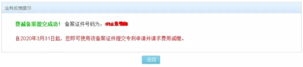 7.确认提交后会展示系统回执,费减备案请求提交成功。