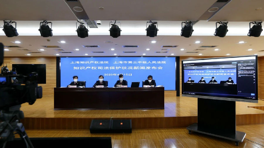 4月15日上午,在第20个世界知识产权日即将到来之际,上海知识产权法院与上海市第三中级人民法院共同召开新闻发布会,发布了两院知识产权司法保护状况白皮书,并公布了30个典型案例。这是上海知识产权法院(以下简称上海知产法院)连续第五年发布知识产权司法保护白皮书,也是上海市第三中级人民法院(以下简称上海三中院)第一次发布知识产权刑事司法保护白皮书,白皮书均以中英文公布。