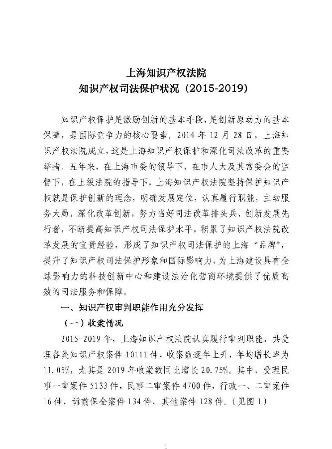 知识产权司法保护状况(2015-2019)