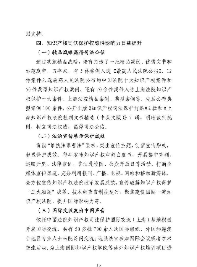 《上海知识产权法院 知识产权司法保护状况(2015-2019)》《上海市第三中级人民法院 知识产权刑事司法保护状况(2015-2019)》《上海知识产权法院典型案例(2015-2019)》