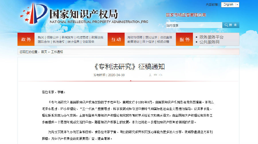《专利法研究》征稿通知
