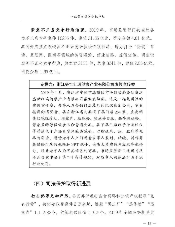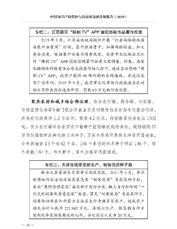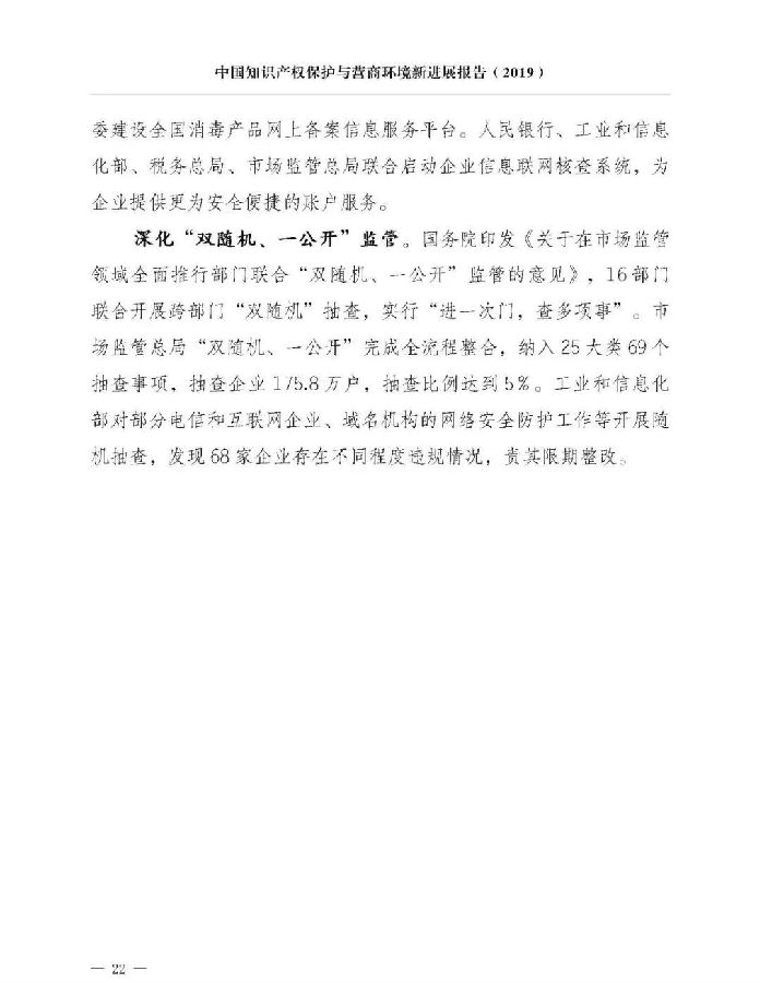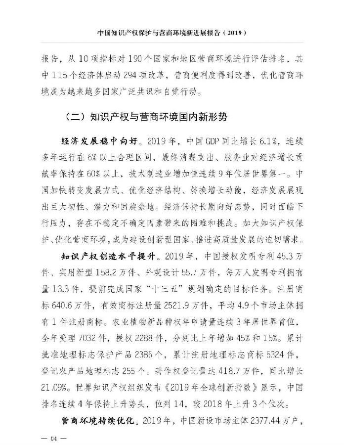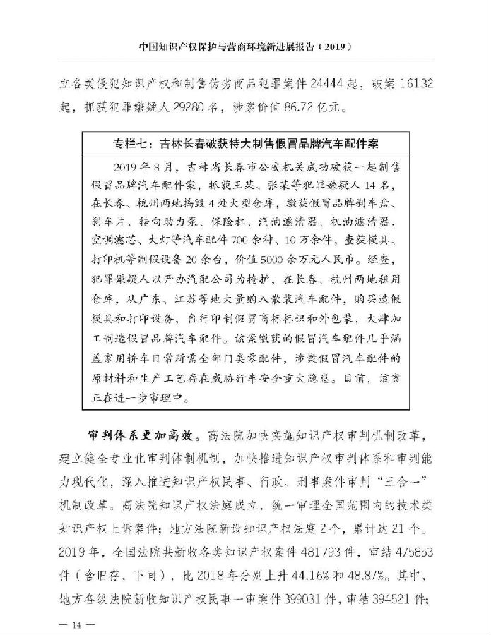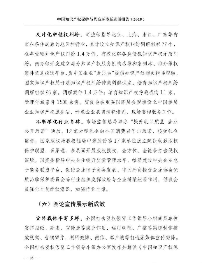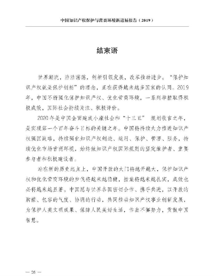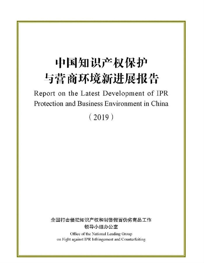 关于《中国知识产权保护与营商环境新进展报告(2019)》,我就介绍这些。《报告》已经挂网发布,大家可以上网查询。