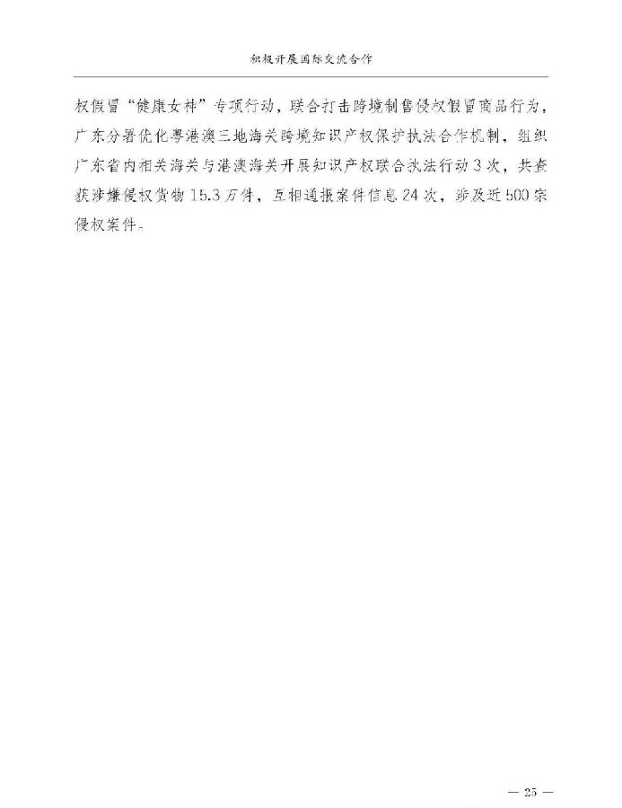 五是继续拓展国际合作,不断深化海关跨境联合执法行动,积极参与世界海关组织、世界贸易组织、世界知识产权组织等有关国际组织的知识产权事务,不断完善打击跨境侵权违法行动的国际网络,进一步强化知识产权保护的国际合作。谢谢。