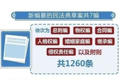 每个人的每项权利在每时每刻都受到民法的保护,出台民法典,标志着我国依法保护民事权利将进入全新的“民法典时代”。新编纂的民法典草案共7编,依次为总则编、物权编、合同编、人格权编、婚姻家庭编、继承编、侵权责任编,以及附则,共1260条,创下新中国立法史的新纪录。