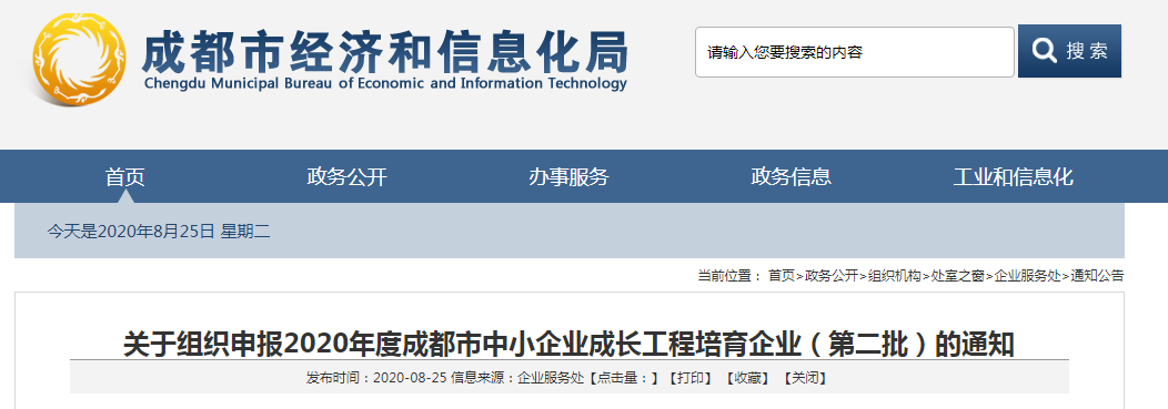 关于组织申报2020年度成都市中小企业成长工程培育企业(第二批)的通知