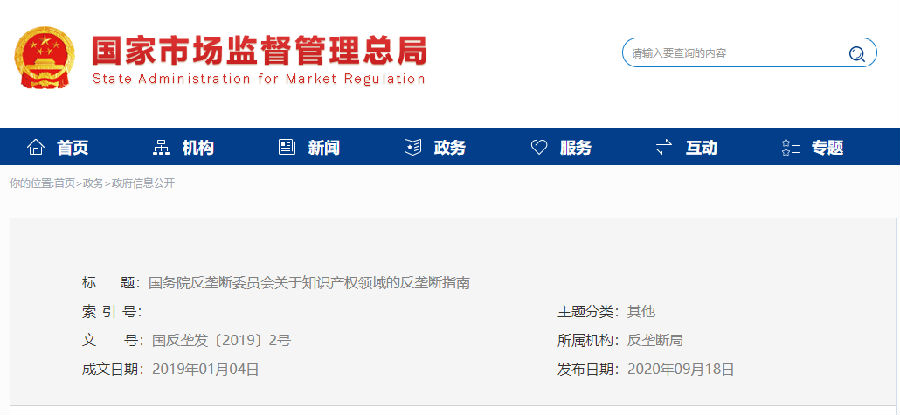 国务院反垄断委员会关于知识产权领域的反垄断指南