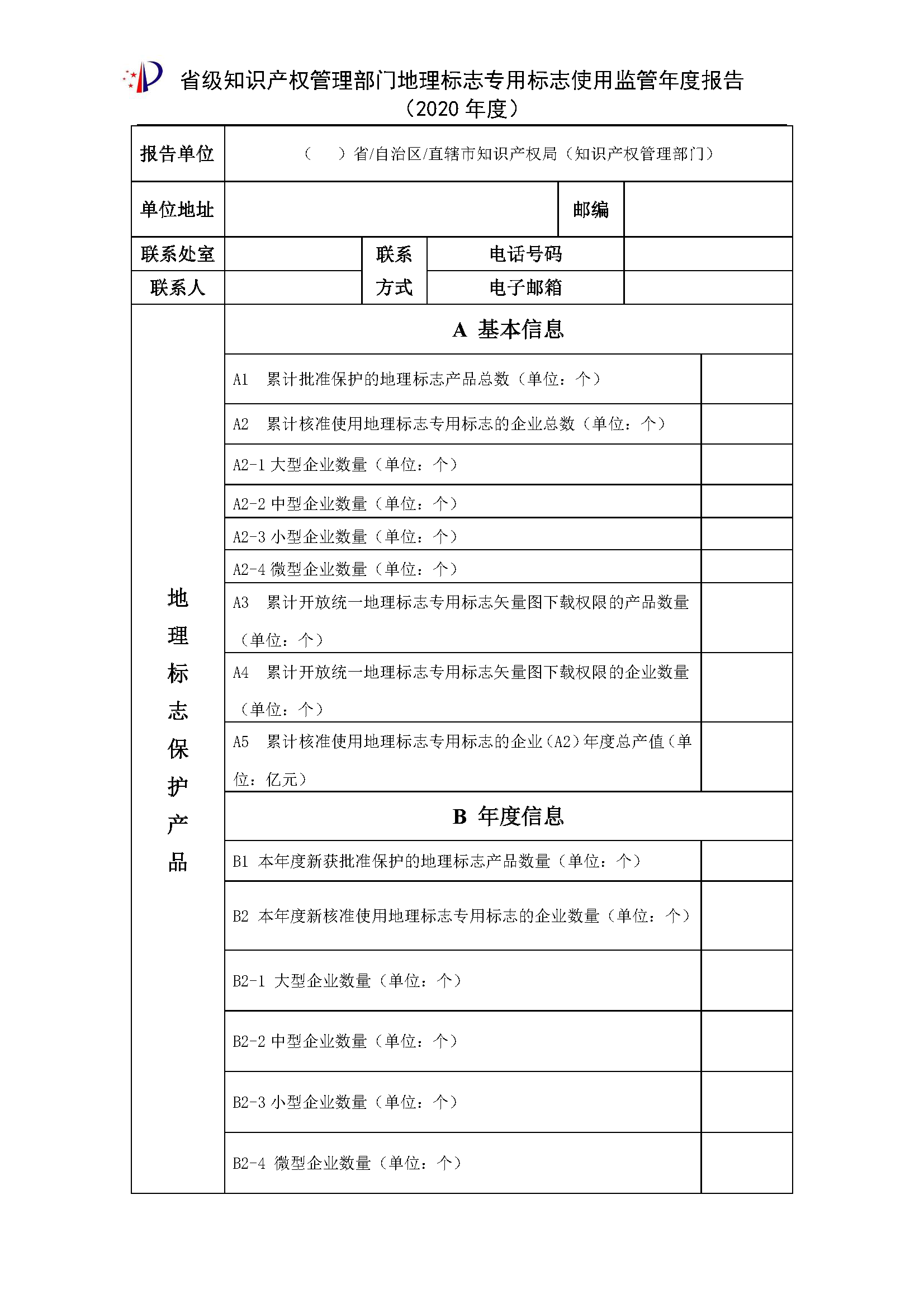 国家知识产权局办公室关于填报地理标志专用标志使用监管2020年度报告的通知