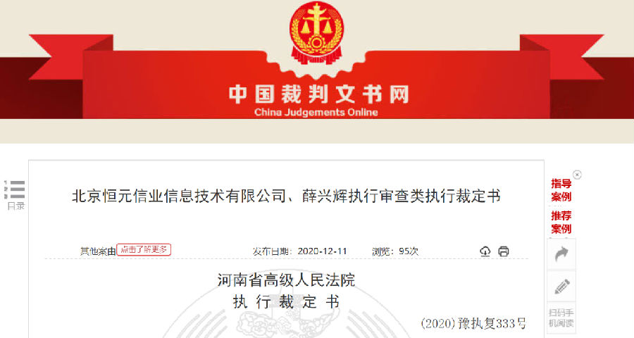 河南高院做出了终审裁定,这将代表着众多地方法院将以此作为参考,恒元公司再想通过法院强制执行将进一步遇阻。同时河南高院也认定了玖富存在重大违规行为。