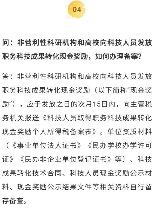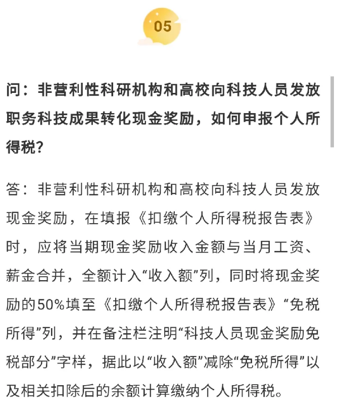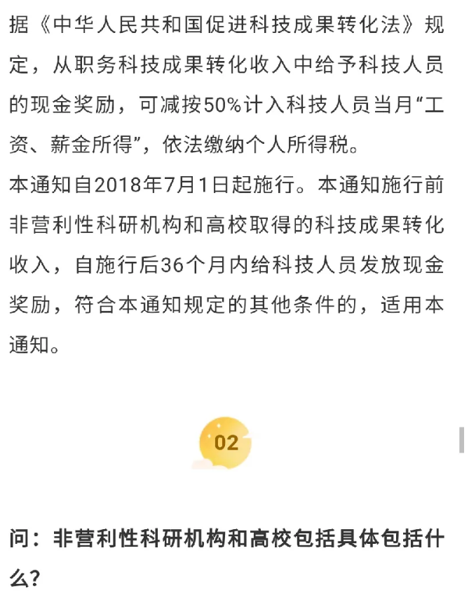 《关于科技人员取得职务科技成果转化现金奖励有关个人所得税政策的通知》(财税〔2018〕58号)