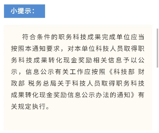 《科技部 财政部 税务总局关于科技人员取得职务科技成果转化现金奖励信息公示办法的通知》(国科发政〔2018〕103号 )