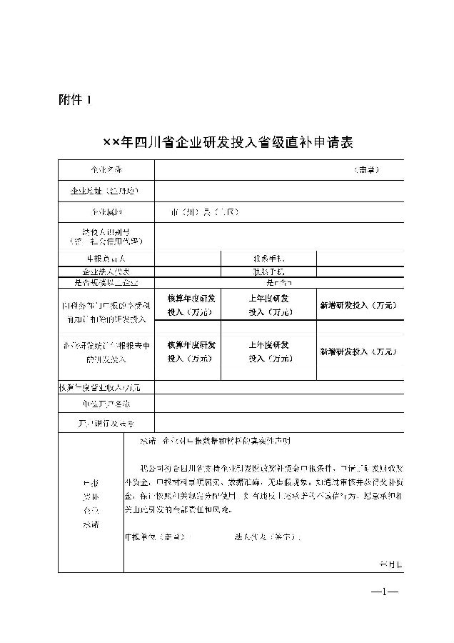 (一)《四川省企业研发投入补助申请表》(随当年申报指南下发)。