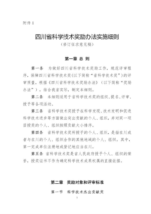 1.《四川省科学技术奖励办法实施细则(修订征求意见稿)》