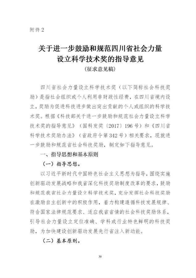 2.《进一步鼓励和规范四川省社会力量设立科学技术奖的指导意见(征求意见稿)》