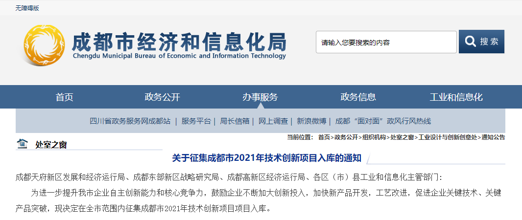 为进一步提升我市企业自主创新能力和核心竞争力,鼓励企业不断加大创新投入,加快新产品开发,工艺改进,促进企业关键技术、关键产品突破,现决定在全市范围内征集成都市2021年技术创新项目项目入库。