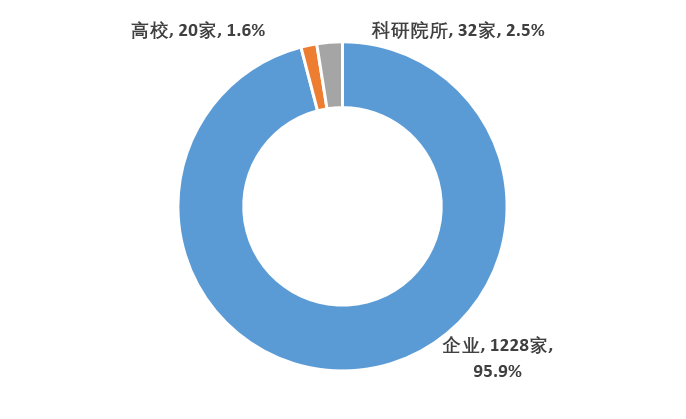 2020年,全省备案主体达到1280家。其中企业1228家,高校20家,科研院所32家。占比情况如下: