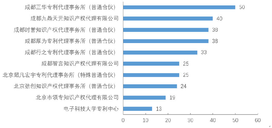 代理专利申请授权量前10的代理机构,具体如下图所示: