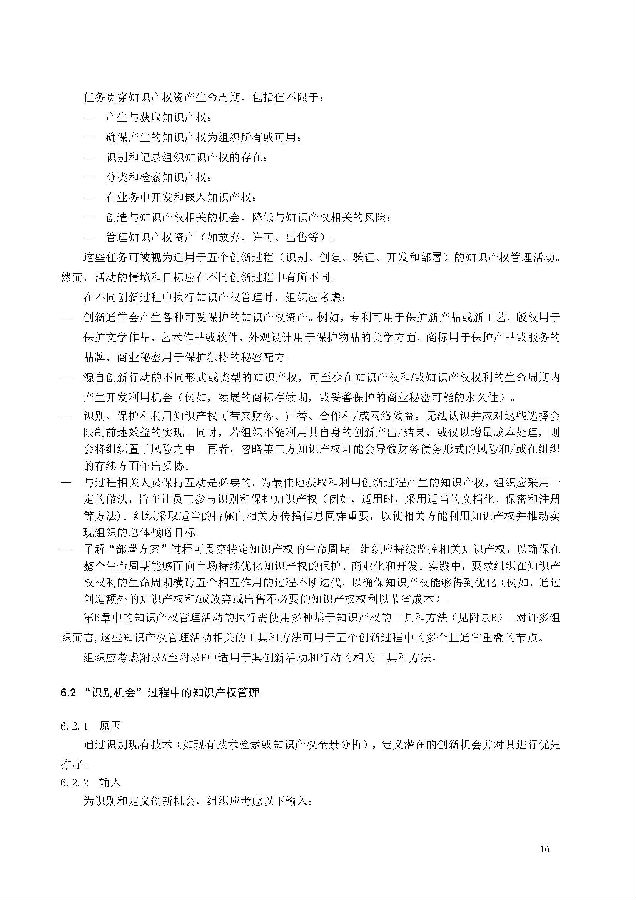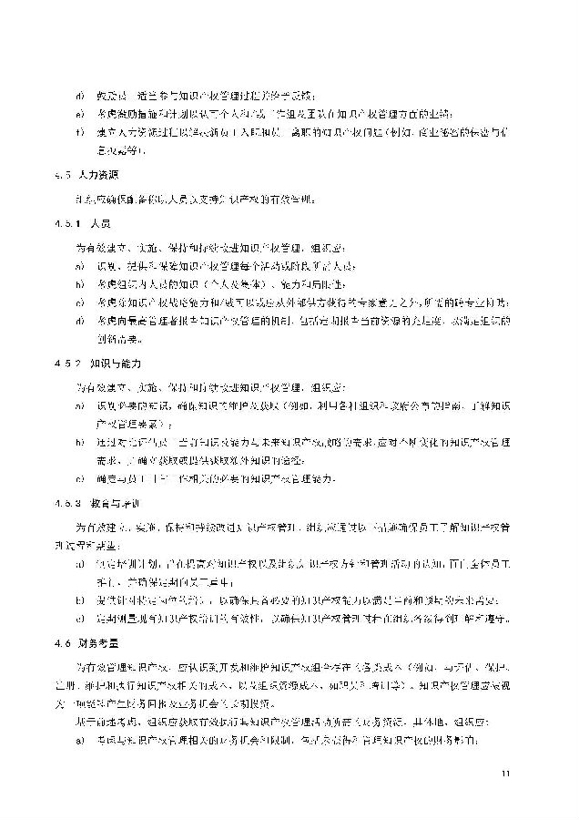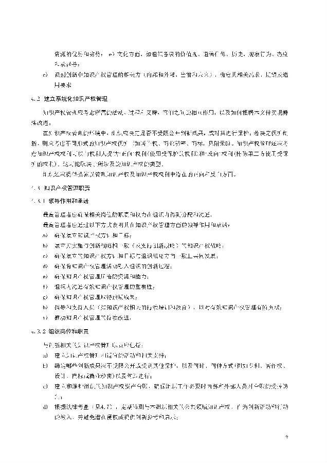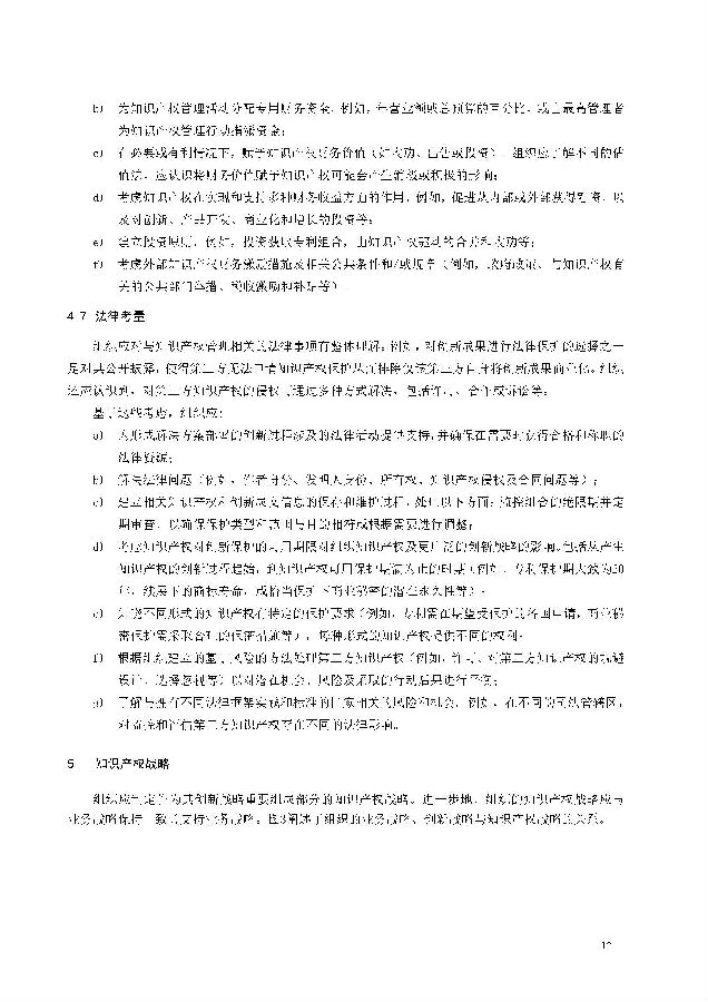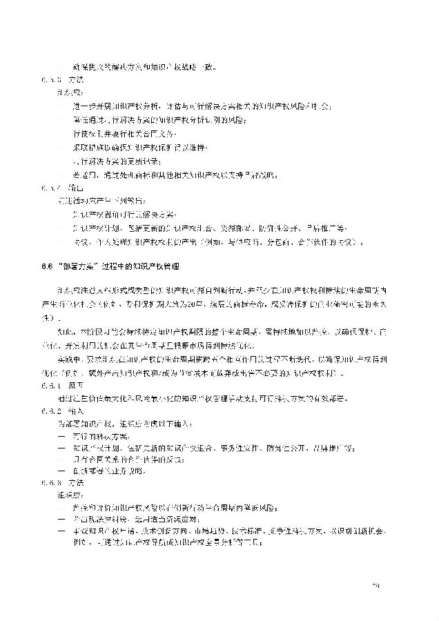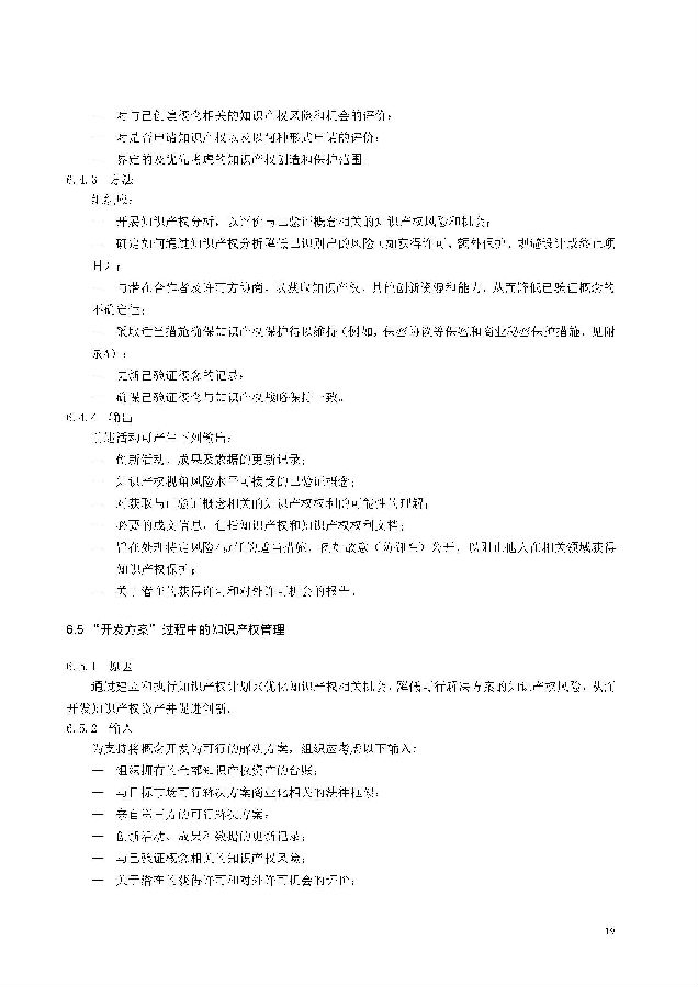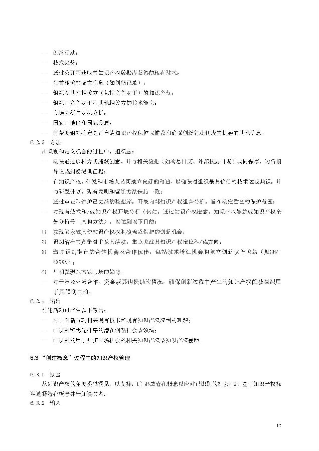 本标准包括:前言;引言;第1章 范围;第2章 规范性引用文件;第3章 术语和定义;第4章 知识产权管理架构;第5章 知识产权战略;第6章 创新过程中的知识产权管理;
